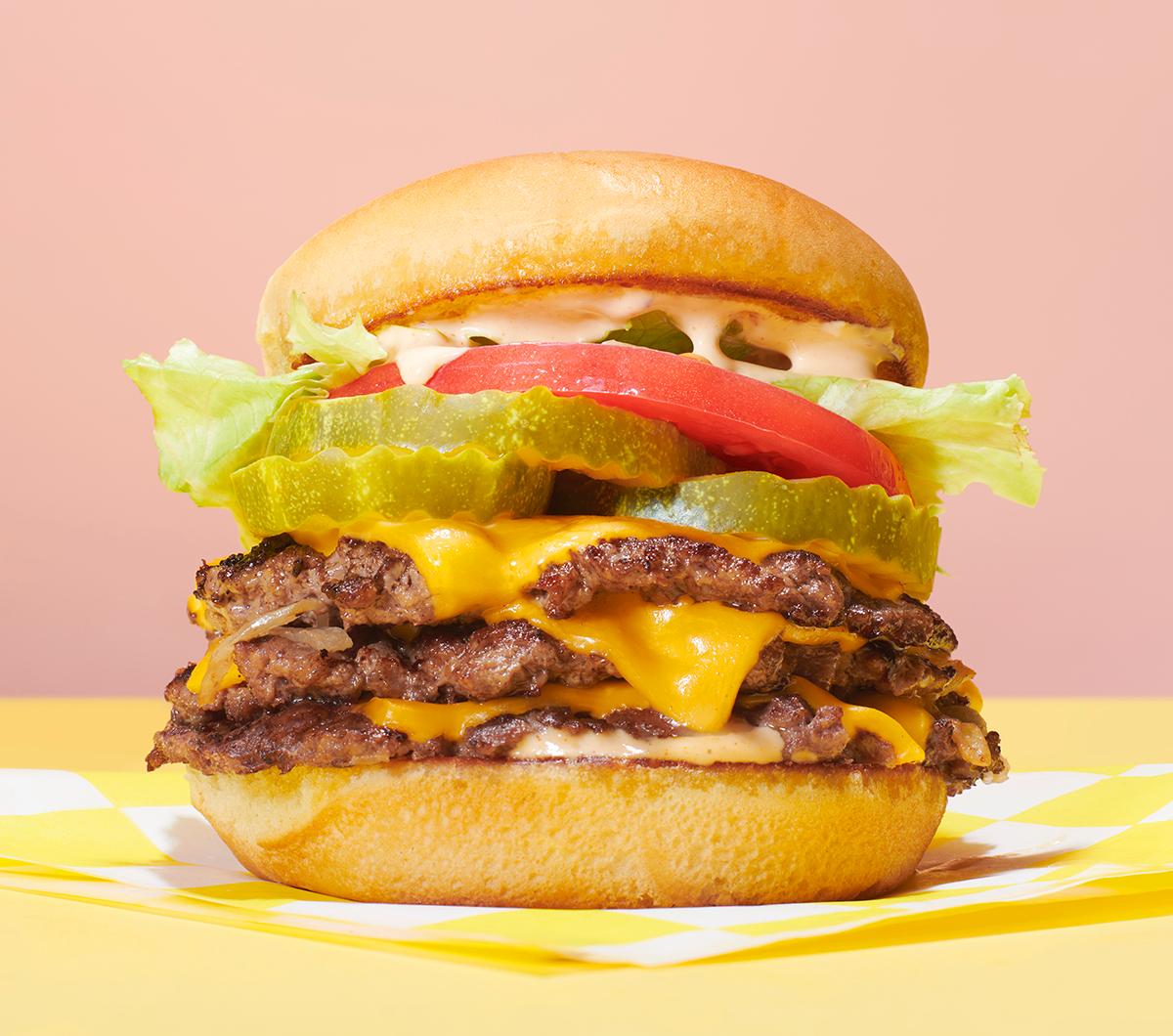 20 Double Cheeseburgers. All burgers come with Cheese, Lettuce, Tomatoes, Onions, Pickles + our signature Nerdy Sauce