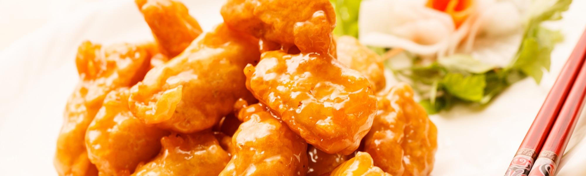 Breaded chicken, BBQ sauce, and mozzarella cheese.